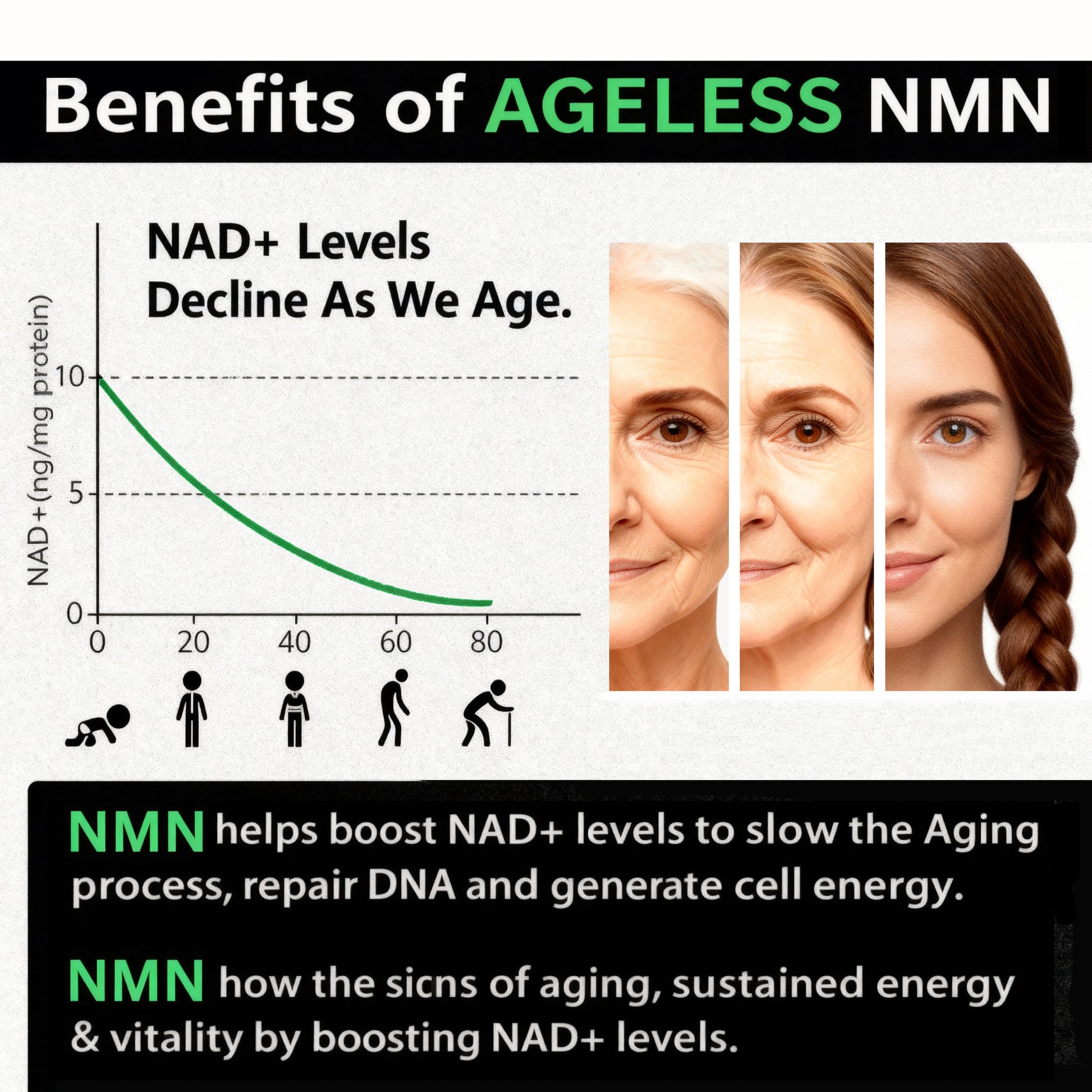 NMN (β-Nicotinamide Mononucleotide) is a cutting-edge longevity nutrient that supports healthy aging from the cellular level. NMN helps replenish declining NAD⁺ levels—an essential molecule for energy production, DNA repair, and metabolic function. With consistent use, NMN promotes better energy, sharper focus, improved metabolism, and youthful vitality from within.